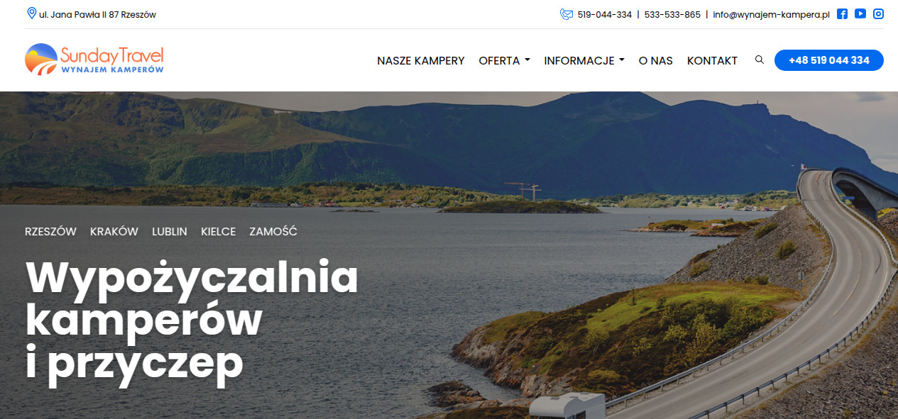 Sunday Travel z Rzeszowa to profesjonalna wypożyczalnia kamperów, oferująca nowe pojazdy renomowanych marek, takich jak Chausson i Benimar. Nasze kampery